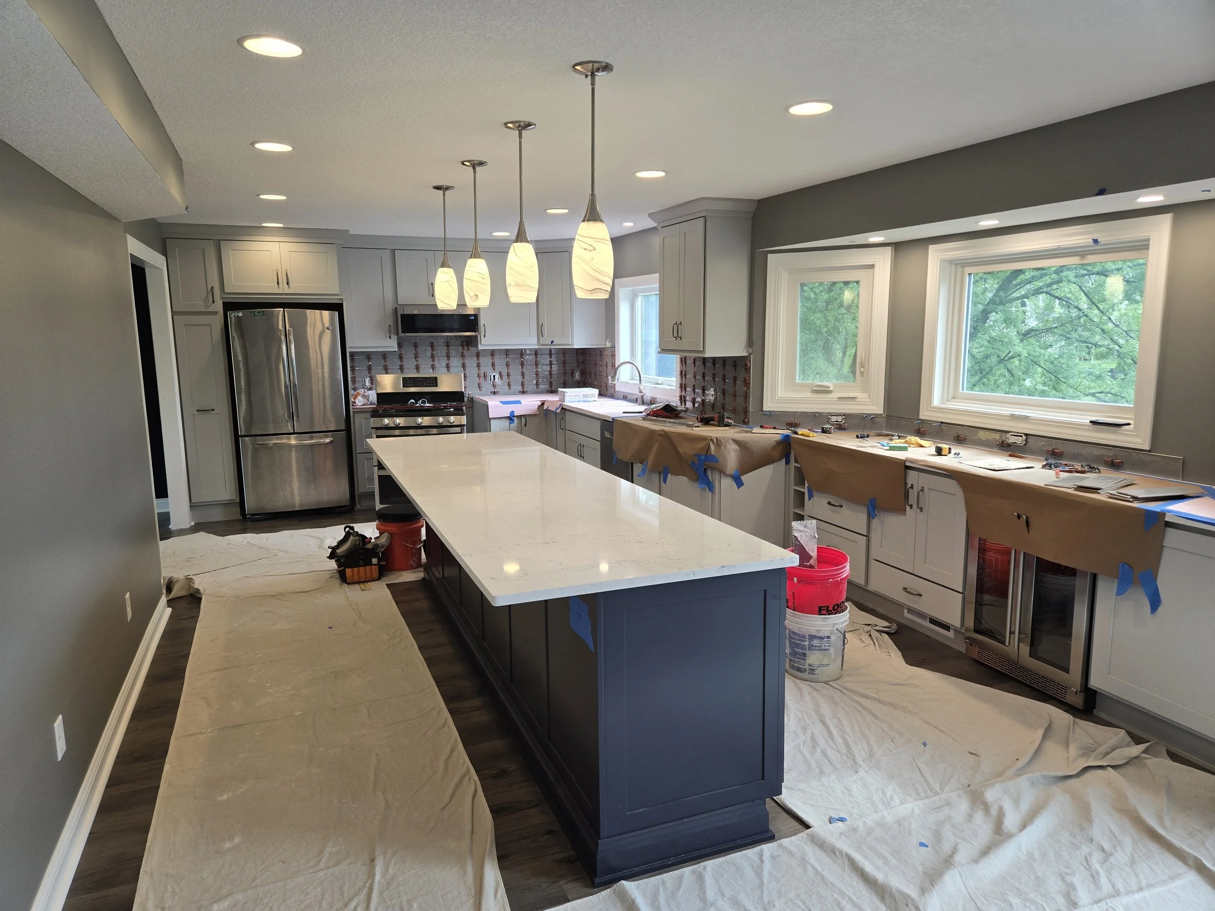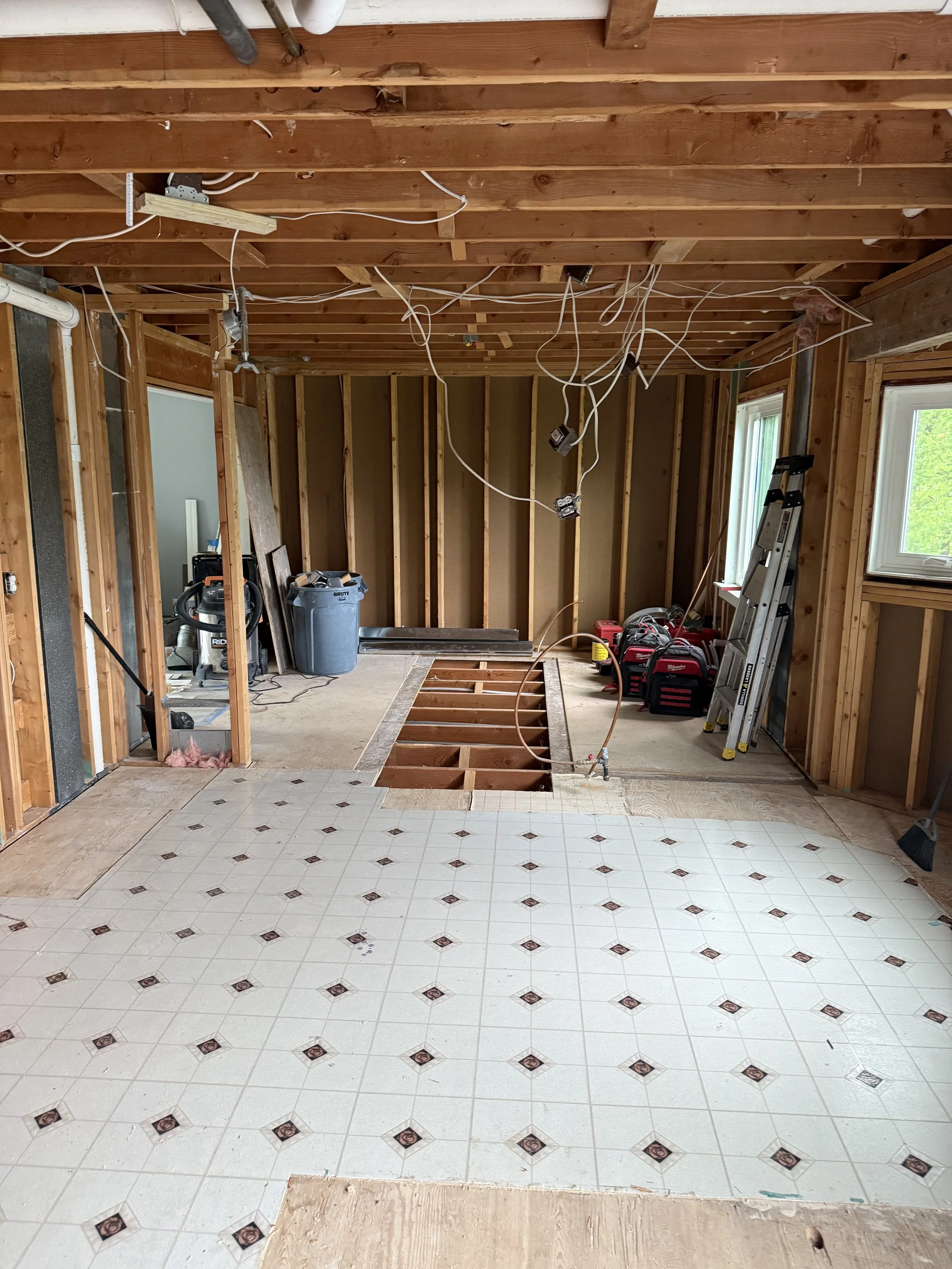 During this remodel, our primary tasks included removing walls and relocating plumbing, electrical, and HVAC systems. By opening up the layout and making it accessible from every entry, the kitchen became the main floor’s new focal point. The greatest challenges we faced on this project were the intricacies of rerouting multiple utilities and matching up the flooring transitions.